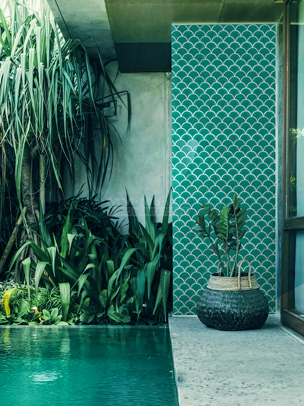 There is a reason to choose green - you know it will never get old! But just because something is all-green, doesn’t mean it needs to lack in personality. One of our favorite tile shape options for an outdoor pond design is Fish Scale. This tile shape has stood the test of time and brings an instant fresh and cozy feel to any space. Our Fish Scales are not only perfect for any interior space project, but also ideal for swimming pools, spas, or backyard ponds.