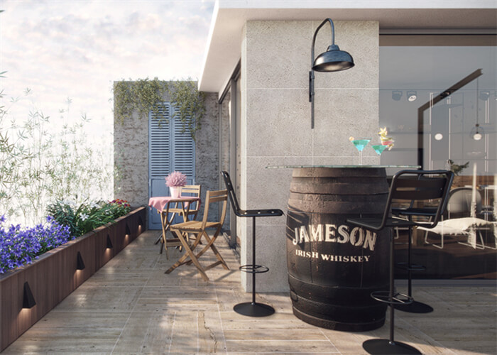 Beige and cream combine together forming a cozy treat in this light colored wood look tile. There would be a soothing sight no matter space design goes with chic, villatic or retro wood. You would enjoy the antique charm of rustic air when installing wood grain effect ceramic floor tiles for interior or exterior use. Just as the attached open balcony shows, sunlight touches the floor and gives it a golden coating, which is warm and hearty. The printed pattern won’t easily get damaged arising from naughty kids and pets, besides being low cost maintaining.