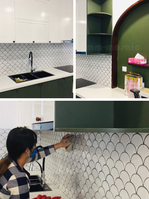 As we all know that fish scale tiles are a type of tile that is shaped like a fish scale. These tiles are popular in home design because of their unique shape and texture. When these tiles are blended with different colors, they can create a stunning visual effect that can completely transform the look of a space. Just like our kitchen remodels result.