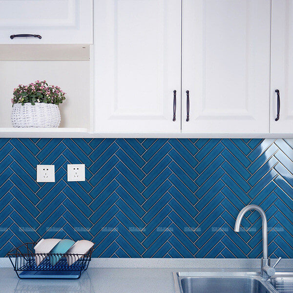 There is a favorite decor trend with real staying power. Here is an example for your reference. The blue herringbone mosaic against the natural white cabinetry, which makes your eyes on more wonderful blue cooking spaces.